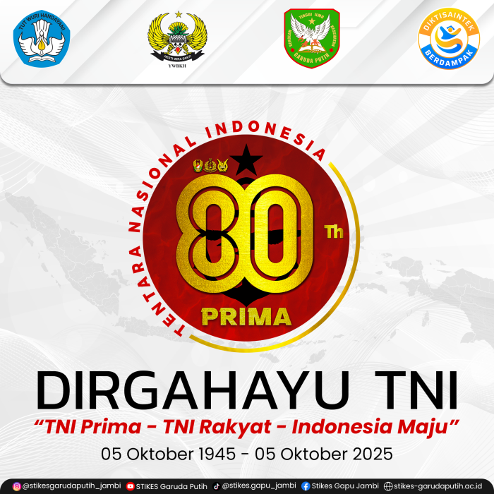 DIRGAHAYU TENTARA NASIONAL INDONESIA KE-80 “TNI Prima – TNI Rakyat – Indonesia Maju”STIKES Garuda Putih mengucapkan...