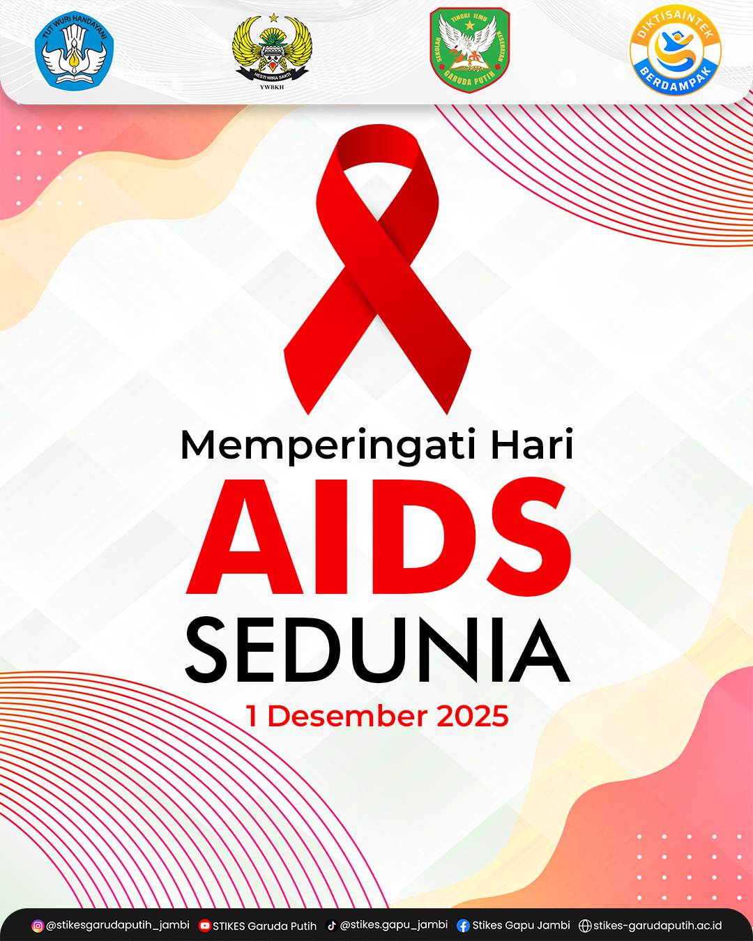 Civitas Akademika STIKES Garuda Putih Jambi mengucapkan Selamat Memperingati Hari AIDS Sedunia — 1 Desember 2025.